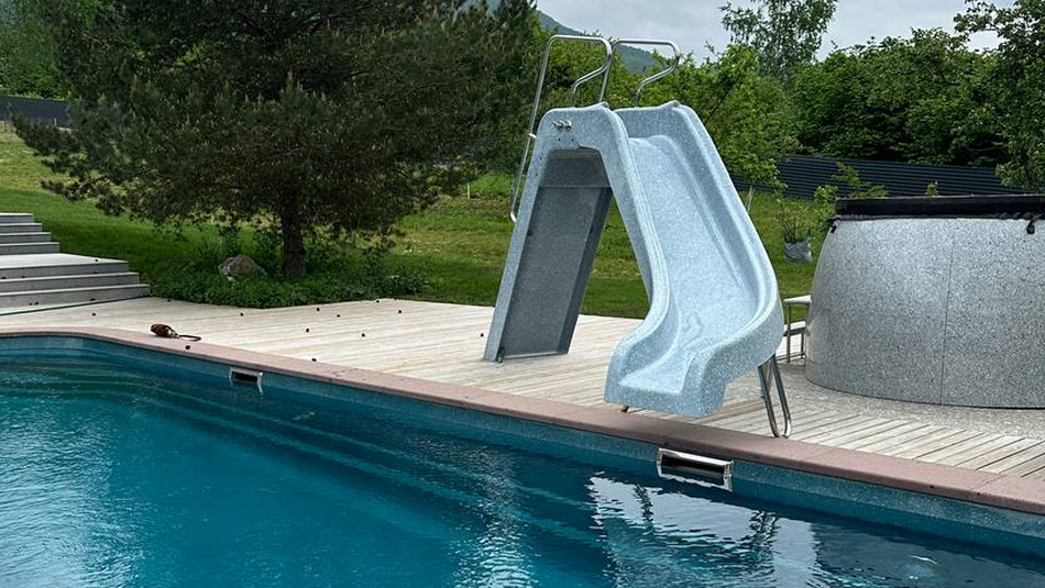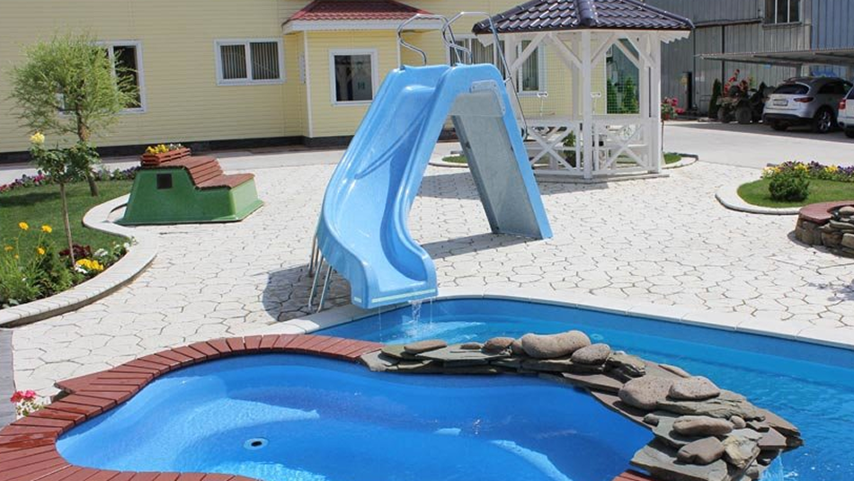 - Водная горка изготовлена из стеклопластика;