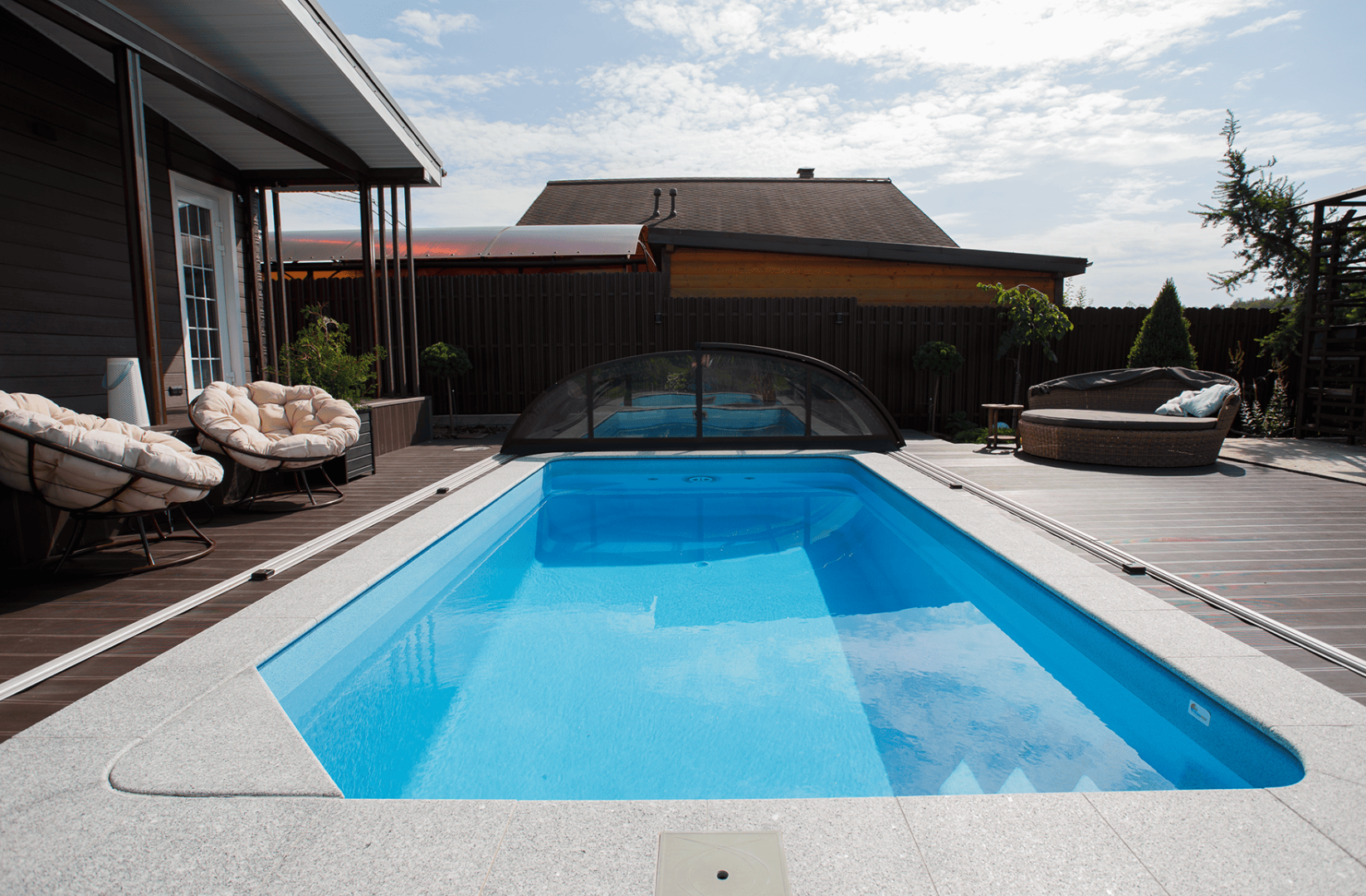 При создании покрытия «Хуко», дизайнеры FRANMER вдохновились цветом воды в тенистых лесных озерах. Глубокое сочетание сине-зеленого, с мягкими переливами голубого передает таинственную атмосферу лесных озер. Бассейн с покрытием «Хуко» настроит на спокойный отдых.